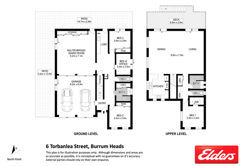 Accessible via both an internal and external set of staircases, the upstairs of 6 Torbanlea offers even further entertaining quarters. An incredibly huge indoor living space spills over to a spacious tiled outdoor deck that boasts serene water vistas and sea breezes while you host family and friends for weekend barbecues. Or picture this: start your days basking in the morning sun with your favourite read and a cuppa, taking in your very own uninterrupted tranquil views.