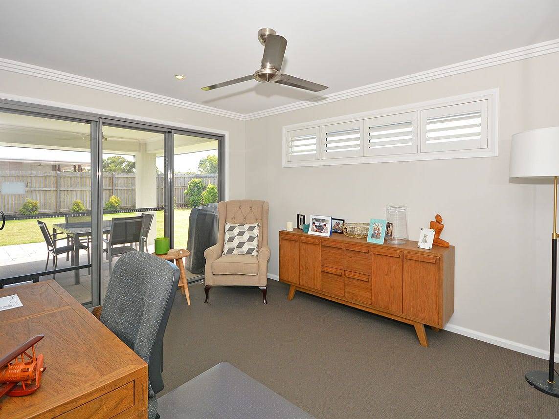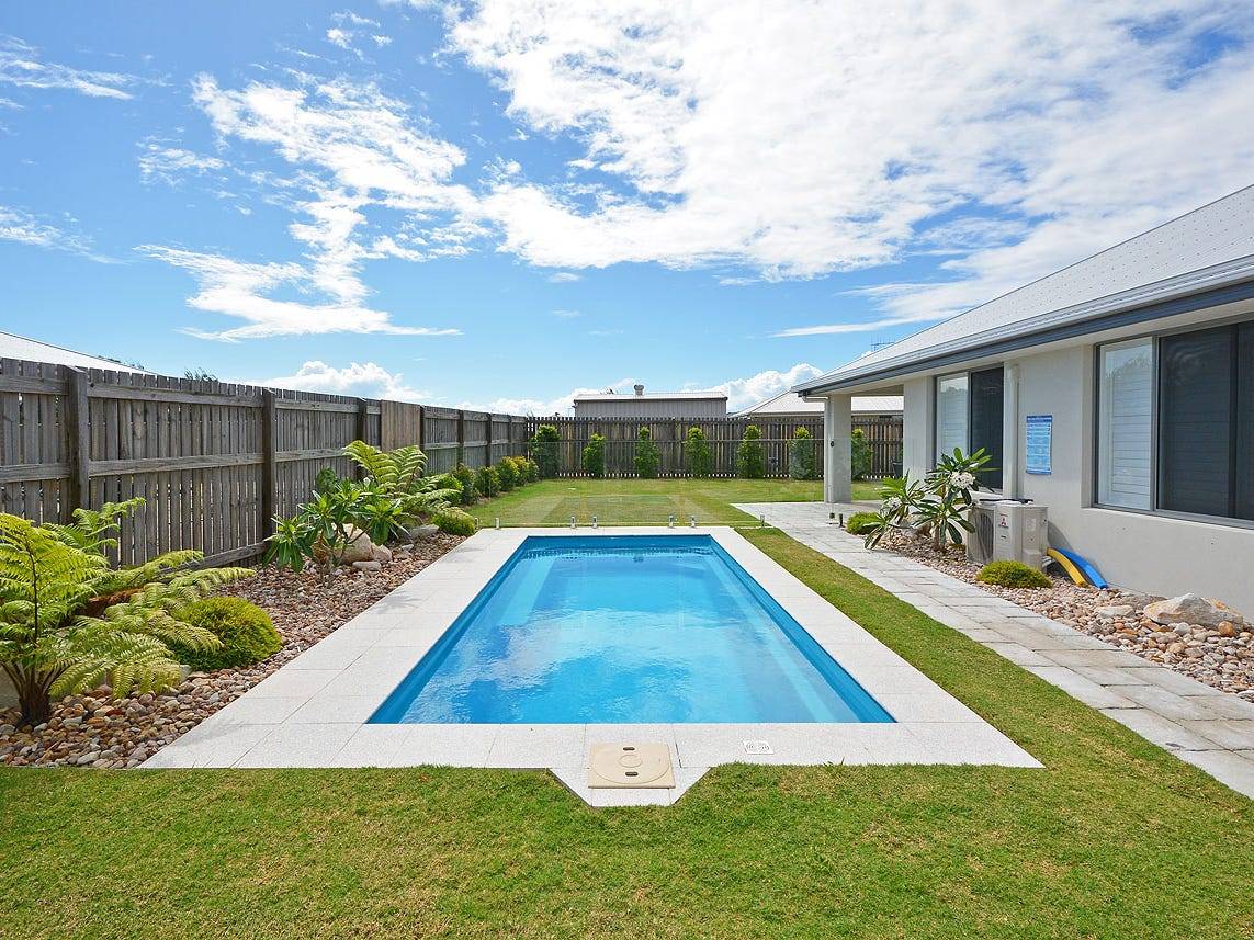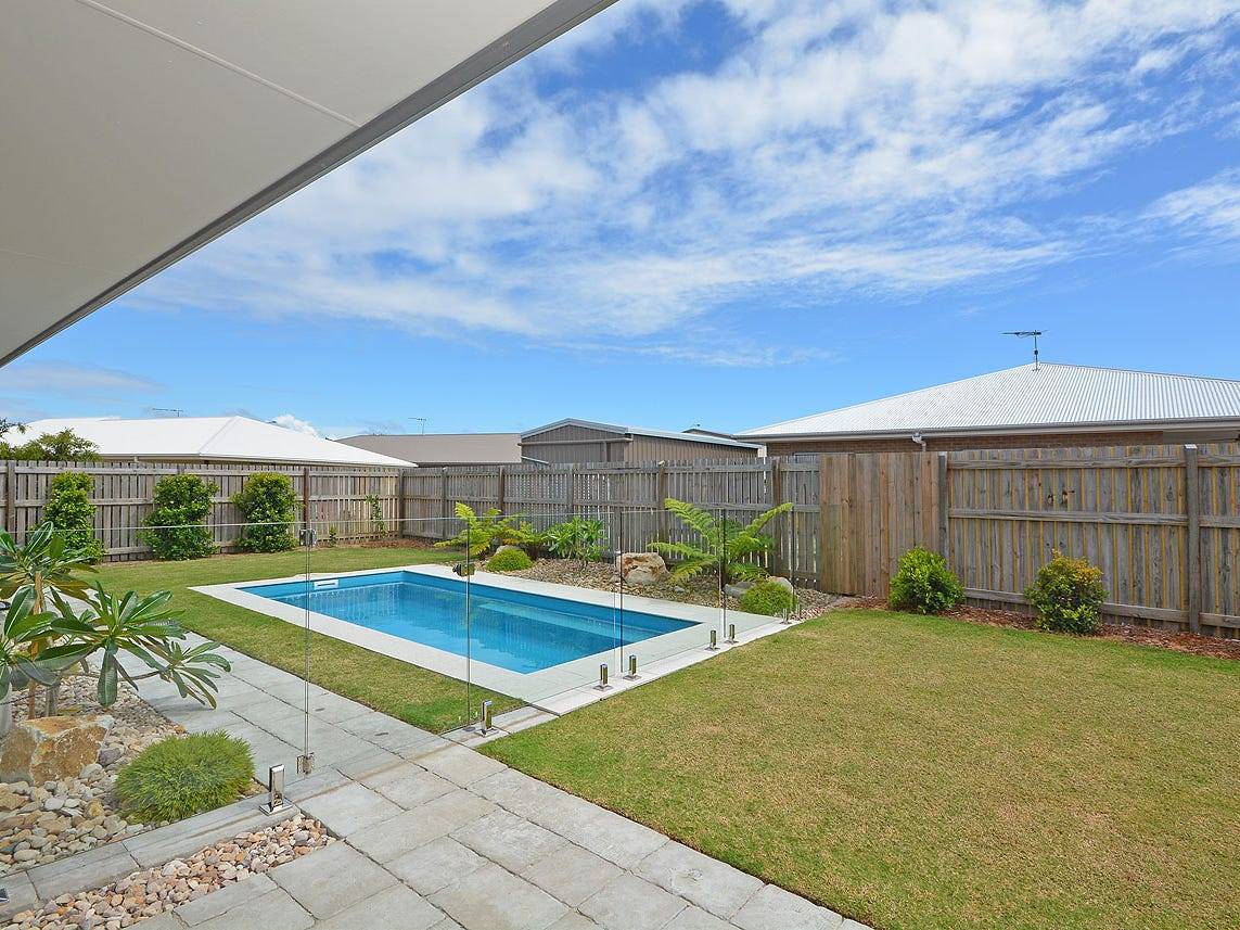 This home is well presented, move in and not do a thing, just relax in the pool! Lowset home featuring open plan kitchen living area with airconitioner. Formal lounge area opening through stacker sliding doors to undercover entertainment area. Main bedroom features his and her walk-in robes and ensuite, and three other bedrooms feature built-ins, carpet and ceiling fans. There is a study nook and loads of storage cupboards. Main bathroom with separate toilet, features bath and shower. Internal access to the double remote door garage. Fully fenced yard with lovely landscaped gardens and in-ground swimming pool. Double gates with easy access reveal concrete pad perfect for caravan or boat, plus good size garden shed. Other features include gardens with watering system in place for easy maintenance. security system, dishwasher, gas cooktop, electric oven, Large pantry, Stone benchtops, solar hot water and much more. Located in Dolphin waters with lakes only a hop, skip and jump away with walking paths, and parkland this property is great value, so don't miss out call me today on 0438 739 865 to arrange an inspection.