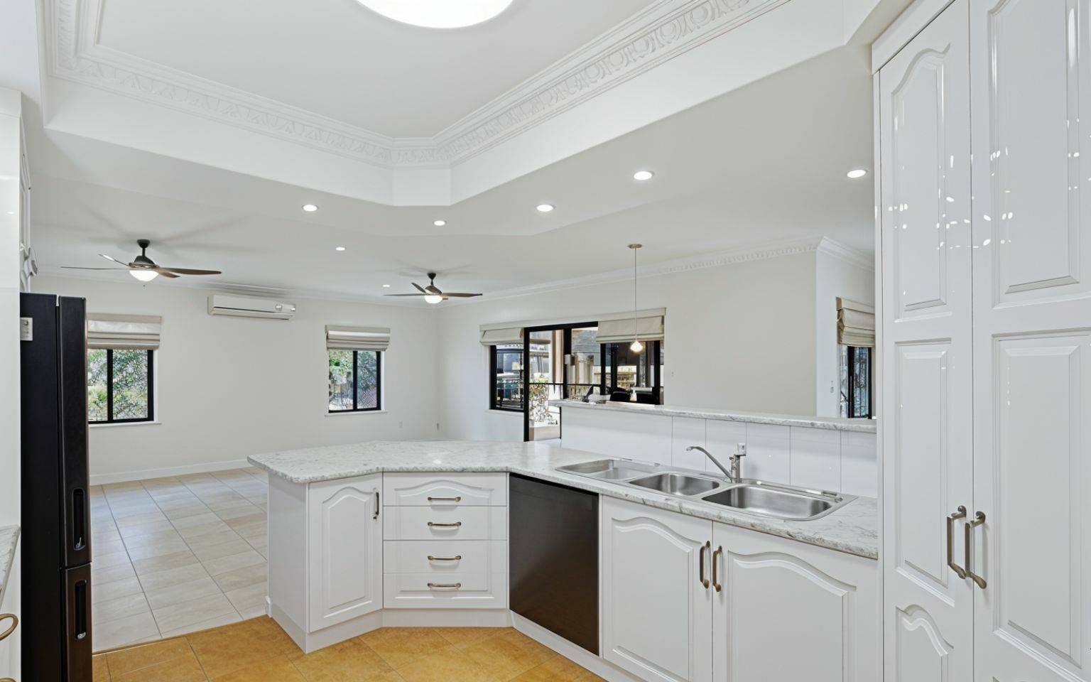 Additional features include split-system air-conditioning in key rooms, high ceilings, security screens, a 14-panel solar system with solar hot water and bore water to keep the gardens lush. There’s plenty of storage, including roof access via a pull-down ladder, and the kitchen is well-equipped with gas cooking, dishwasher, breakfast bar, lots of cupboards and benchtop space.
