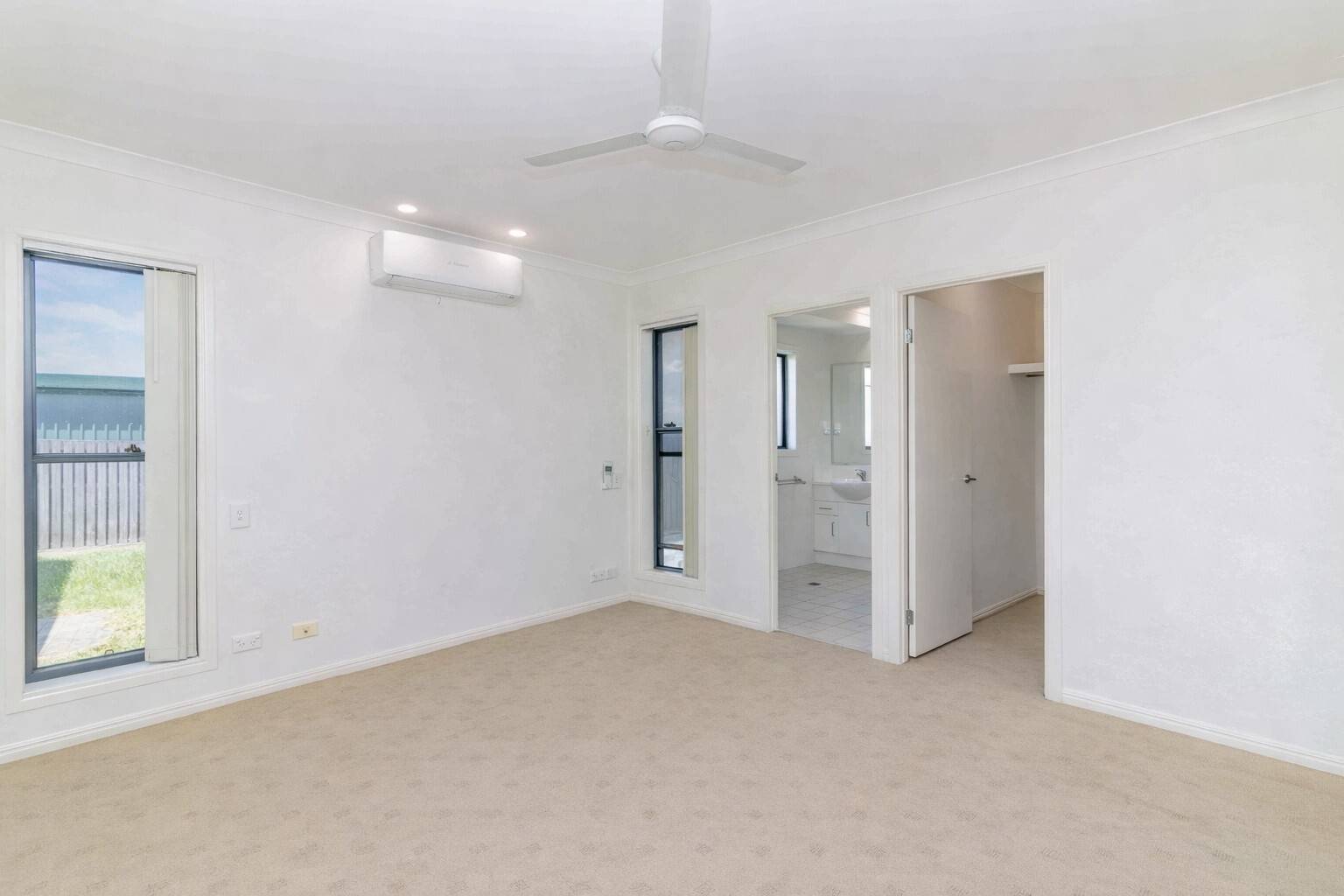 The home includes four well-sized bedrooms, all fitted with built-in wardrobes. The main bedroom is privately positioned and offers air-conditioning, a walk-in robe, and an ensuite, creating a comfortable retreat separate from the remaining bedrooms.