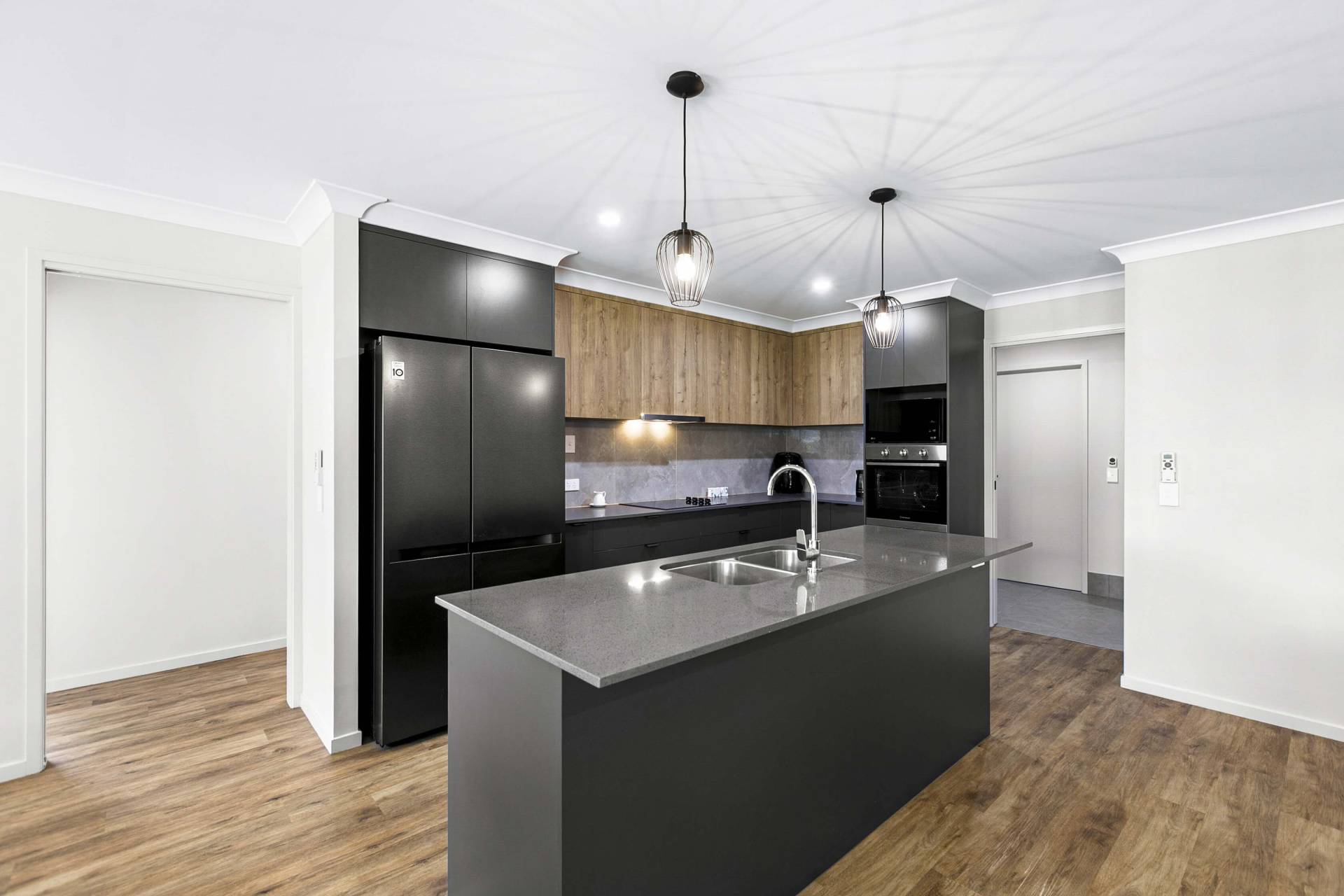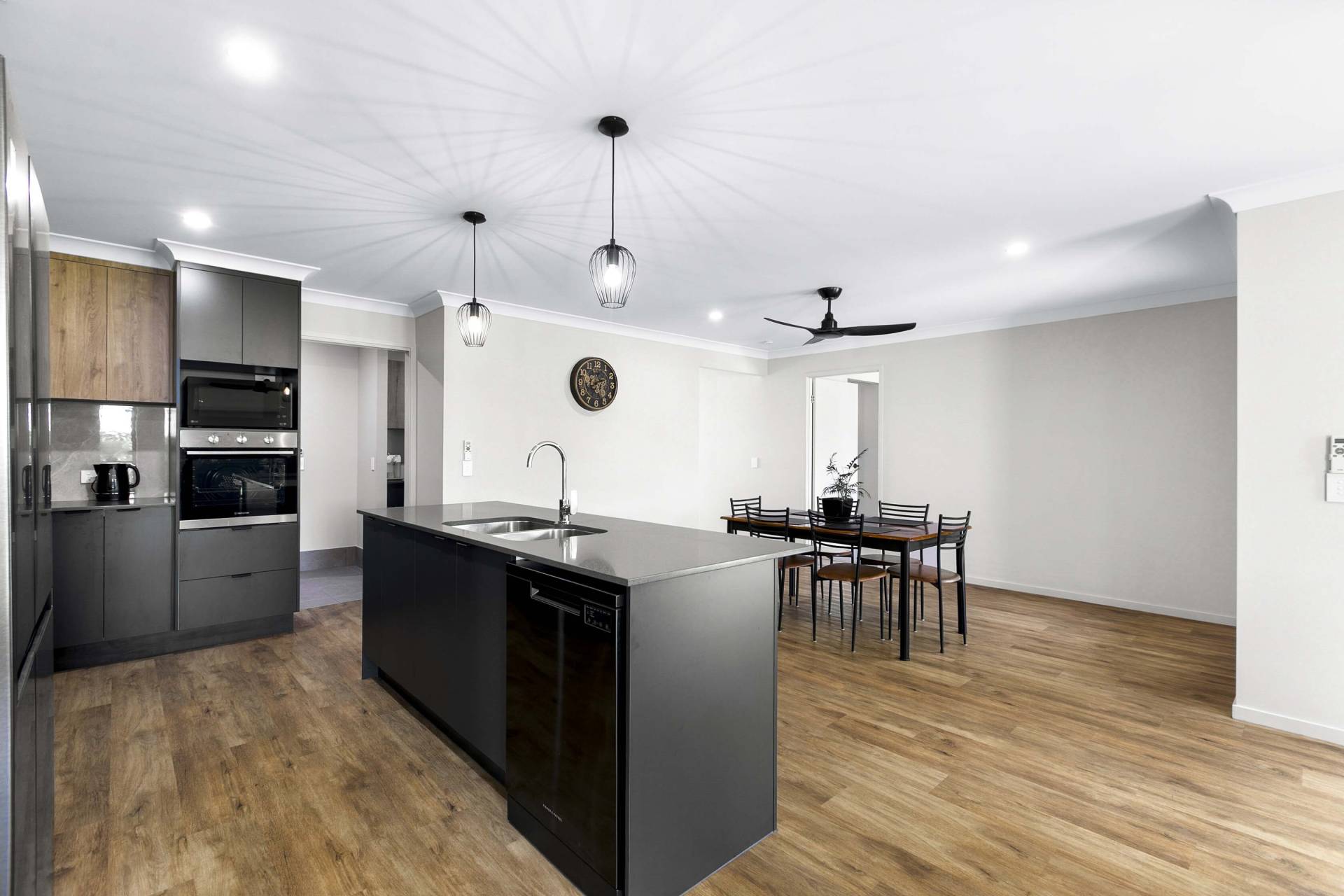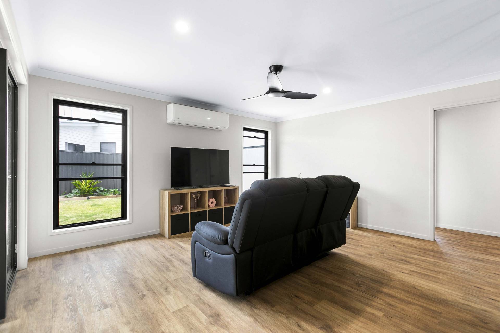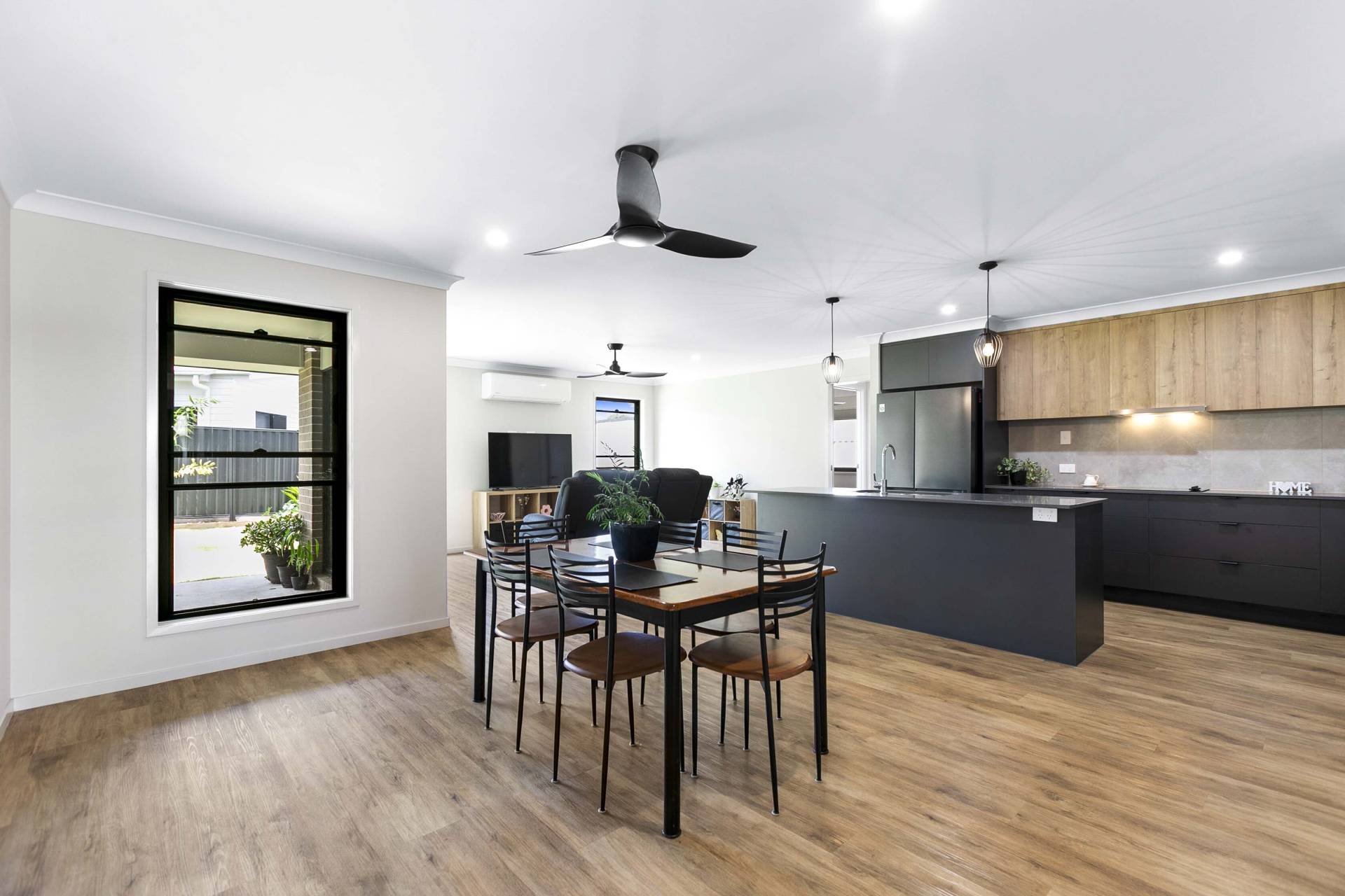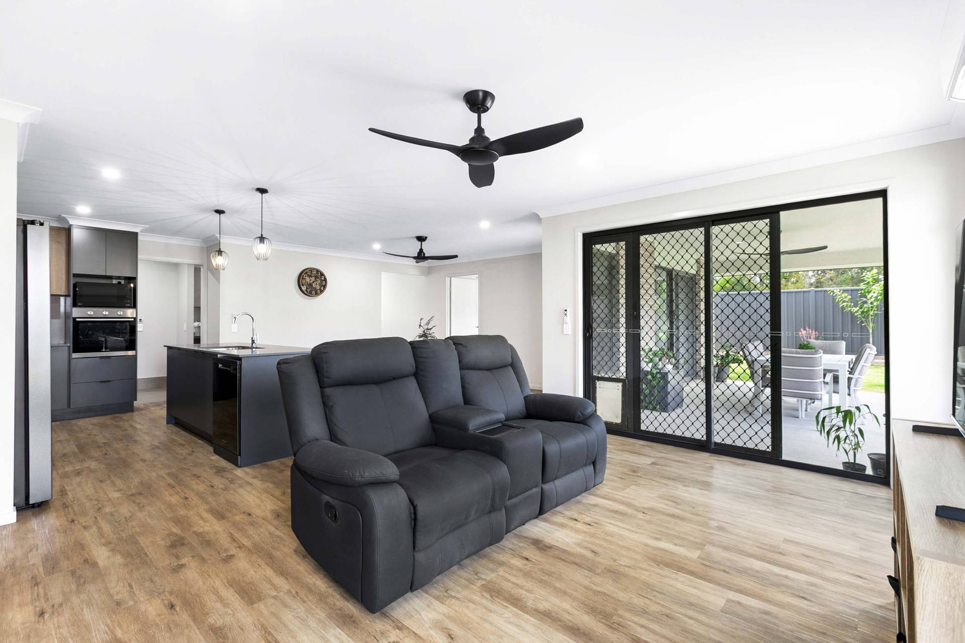 At the heart of the home, the open-plan kitchen blends style and practicality, featuring stone benchtops, a dishwasher, and a walk-in pantry—perfect for everything from casual breakfasts to relaxed entertaining. The adjoining living spaces invite connection while still offering room to unwind.