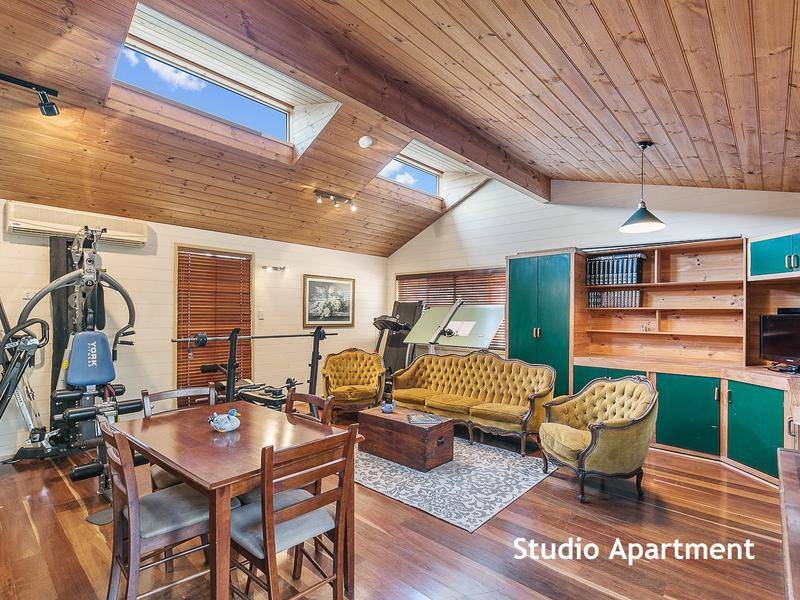 * Separate air conditioned guest house full of charm and character, with full kitchen and bathroom, could be permanently lived in, a large home office, elaborate man cave, teenage retreat or visitor's accommodation.