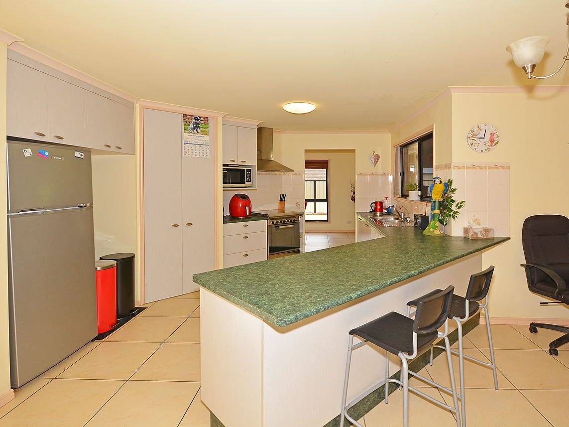 This solid three bedroom home was originally 4 bedrooms and can be converted back simply by reinstalling the built in wardrobe that was adjoining the two bedrooms. This 4th bedroom is currently used as an additional living area which is accessible from both the third bedroom and hallway. The main bedroom & second bedroom have built in wardrobes and there is a good sized ensuite off the main bedroom and a separate bathroom and toilet off the Laundry. Crimsafe security screens are installed on the front of the home with the remainder of the home with security screens. The property is tiled throughout the home and has ceiling fans and air conditioning throughout plus solar hot water. The kitchen has gas cooktop, electric oven, dishwasher and good bench space and overlooks the spacious dining room & additional living area. The fully fenced backyard has a lovely separately fenced pool and spacious undercover entertaining area complete a 9.5m x 6m shed with Double Garage Door and side access to the rear of the property. The front yard is also fenced separately with lovely pebblecrete driveways and a double lock up garage in addition to an double gate and lovely black pool fencing at the front and colourbond on the sides. There is 5kw solar system and a water tank off the back shed. This is a great home and is priced to sell, call me today on 0438 739 865 to arrange your inspection.