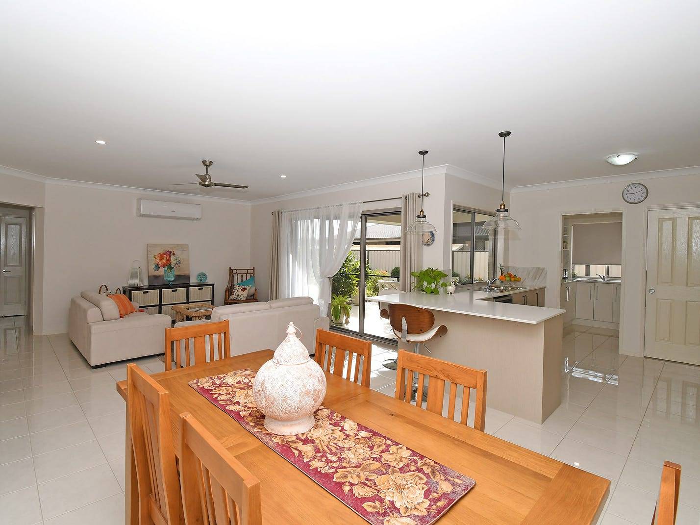 The master bedroom has walk-in robe and ensuite with the 3 guest rooms all with built-ins and ceiling fans. The home has a separate formal lounge, 3 split system air-conditioners, a 6kw solar system. A very open and comfortable includes 8'6' ceilings, dishwasher, and ducted vacuum cleaning system.