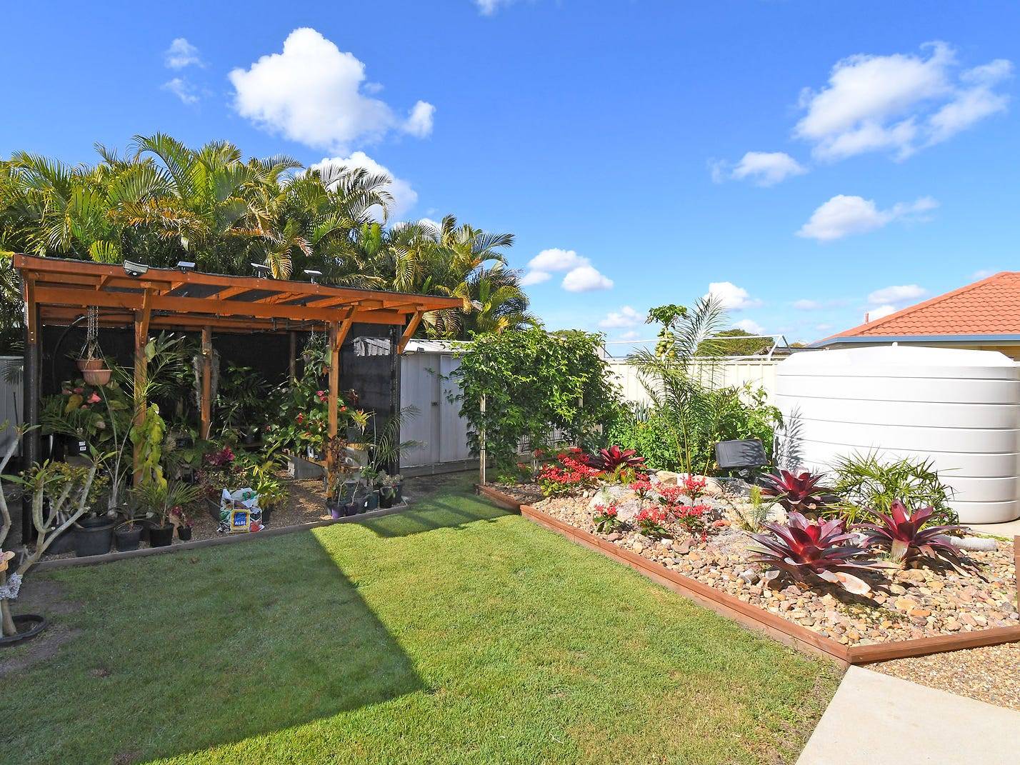* great side access to the 6mx4m shed with a 12mx4m carport *rain water tank, bore water, *6kw solar panels *solar hot water *water reticulation to the whole property *and for the green thumbs a dedicated shade house.