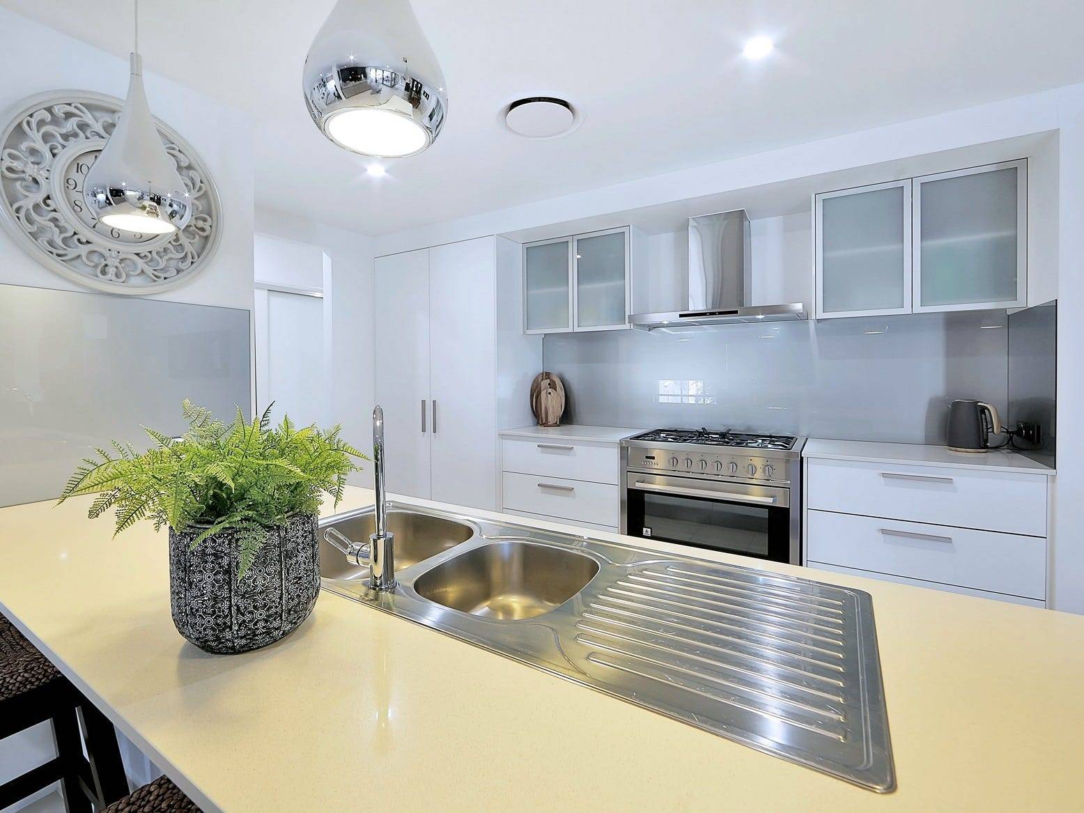 * Stylish kitchen with stone benches, double sink, dishwasher, Gas Cooktop, S/S Extraction Fan, plenty of cupboard space and plumbing in place for your refrigerator.