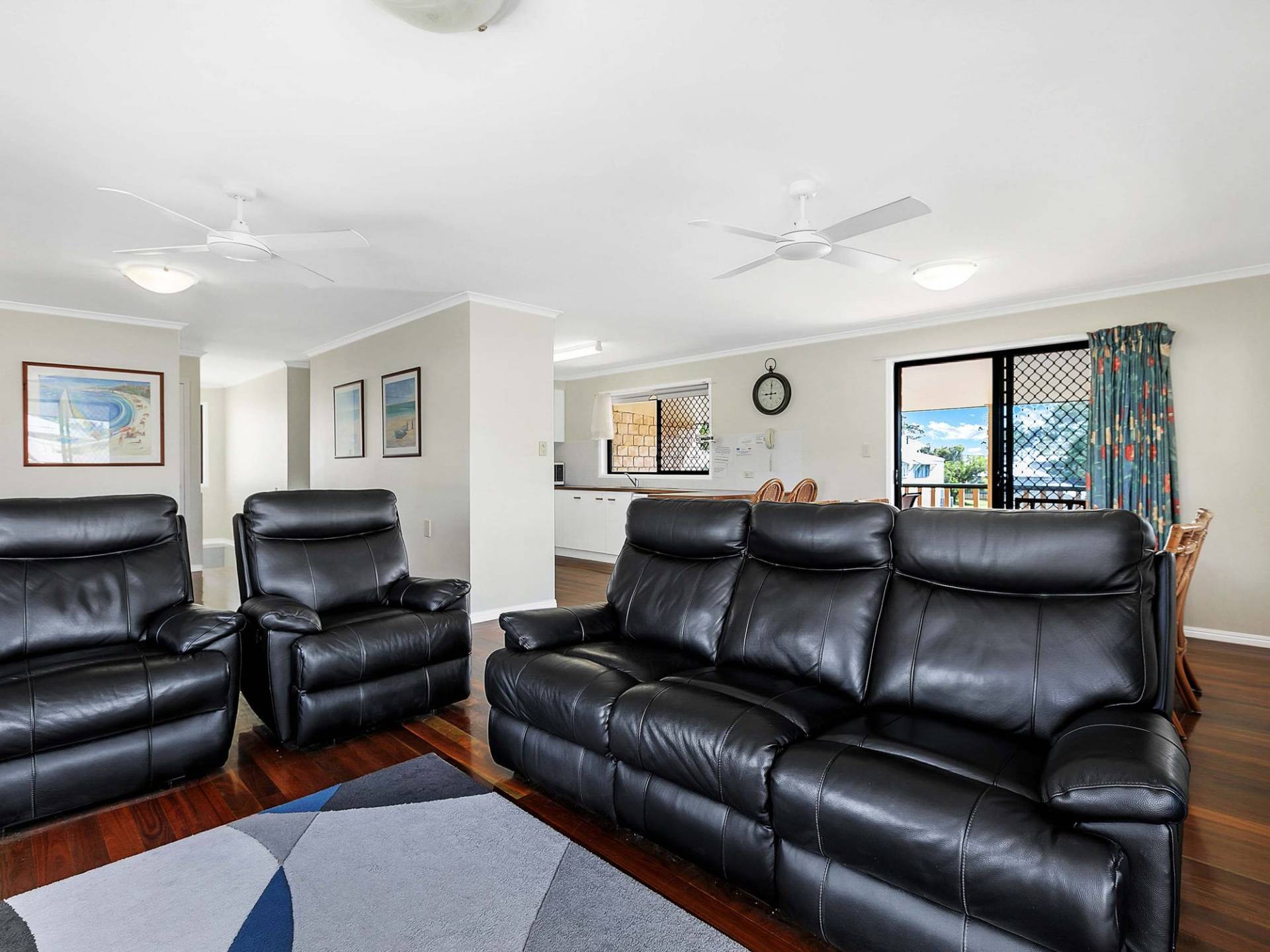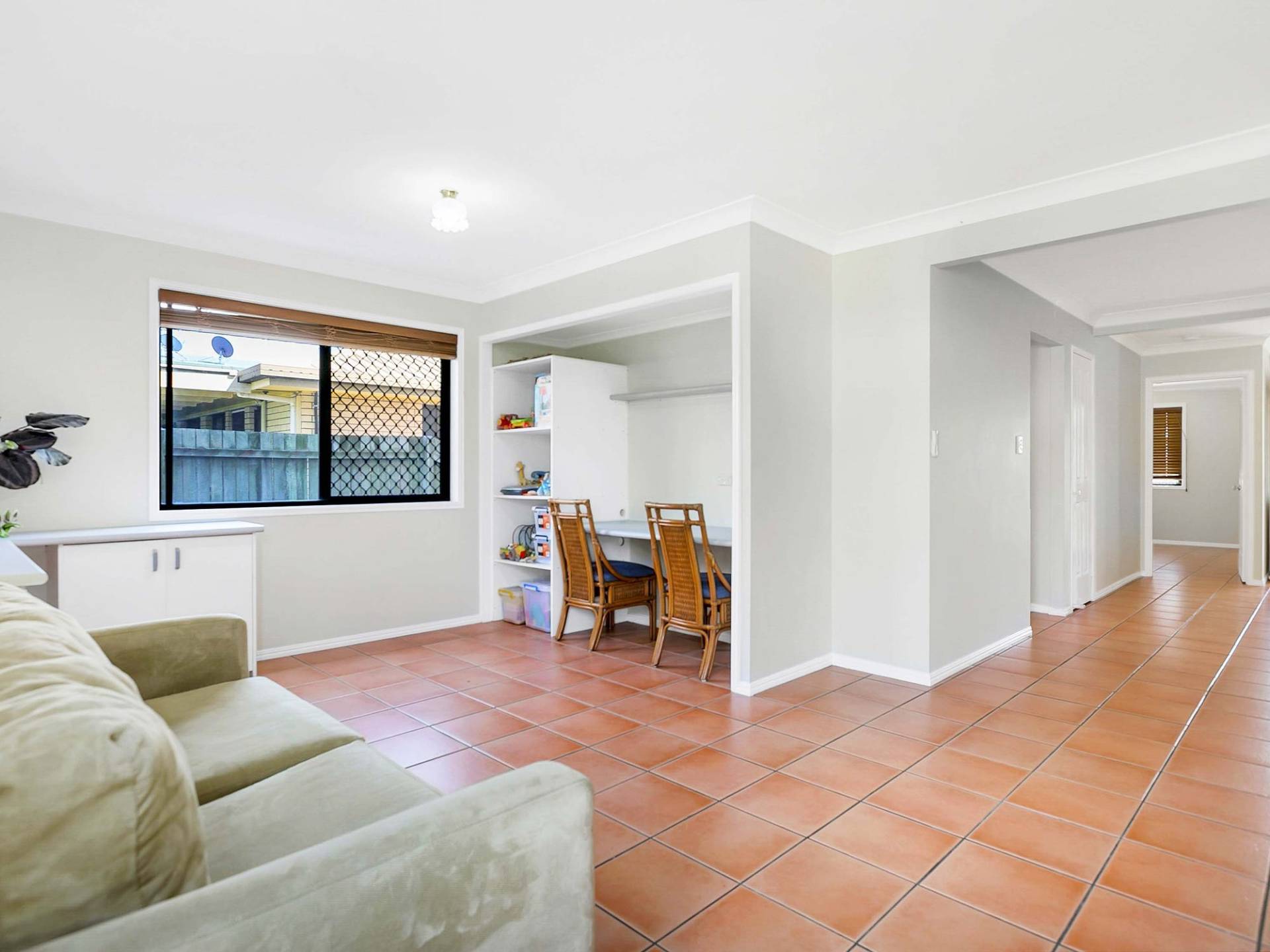 * Lounge room with ceiling fan plus kids corner or this space could be set up as an office