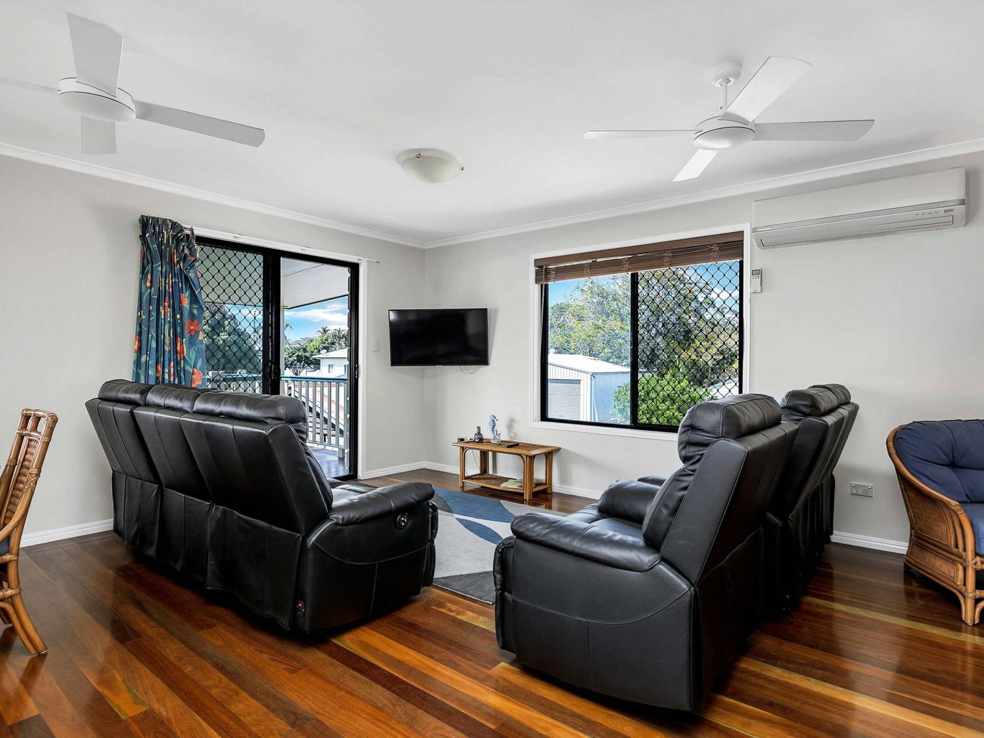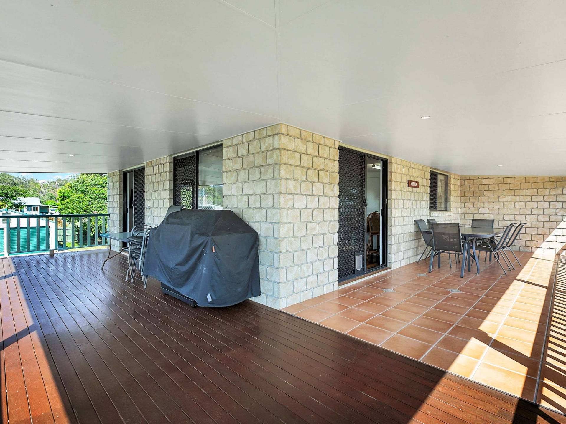 * Expansive air conditioned lounge with doors out to wrap around deck (partially tiled and partially timber) - lounge is currently set up as lounge plus sitting area