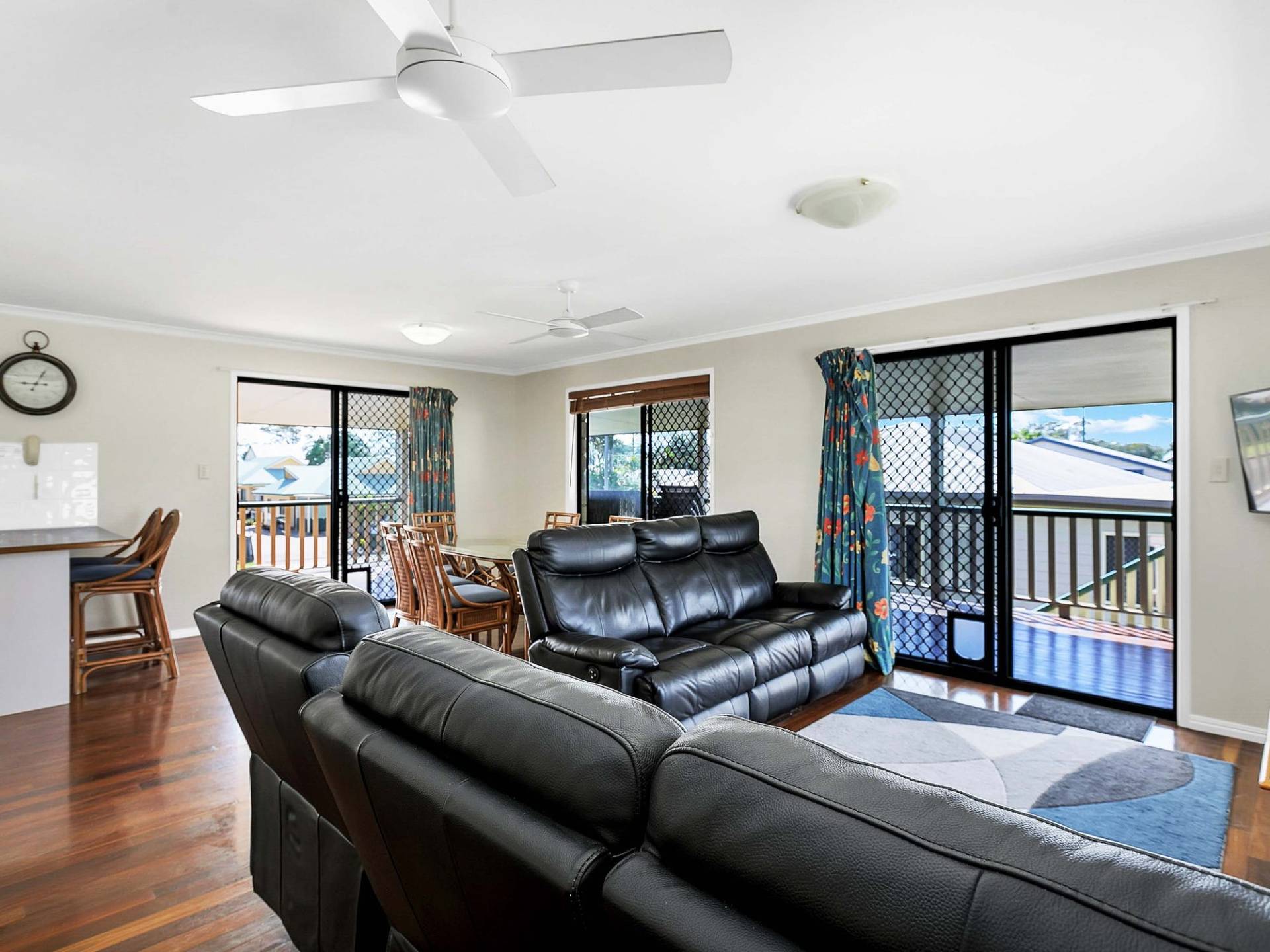 * Dining area also opening out on to the wrap around deck, one side facing north and the other east with stairs to head down and walk to the beach when you've finished cooking up a storm on the BBQ