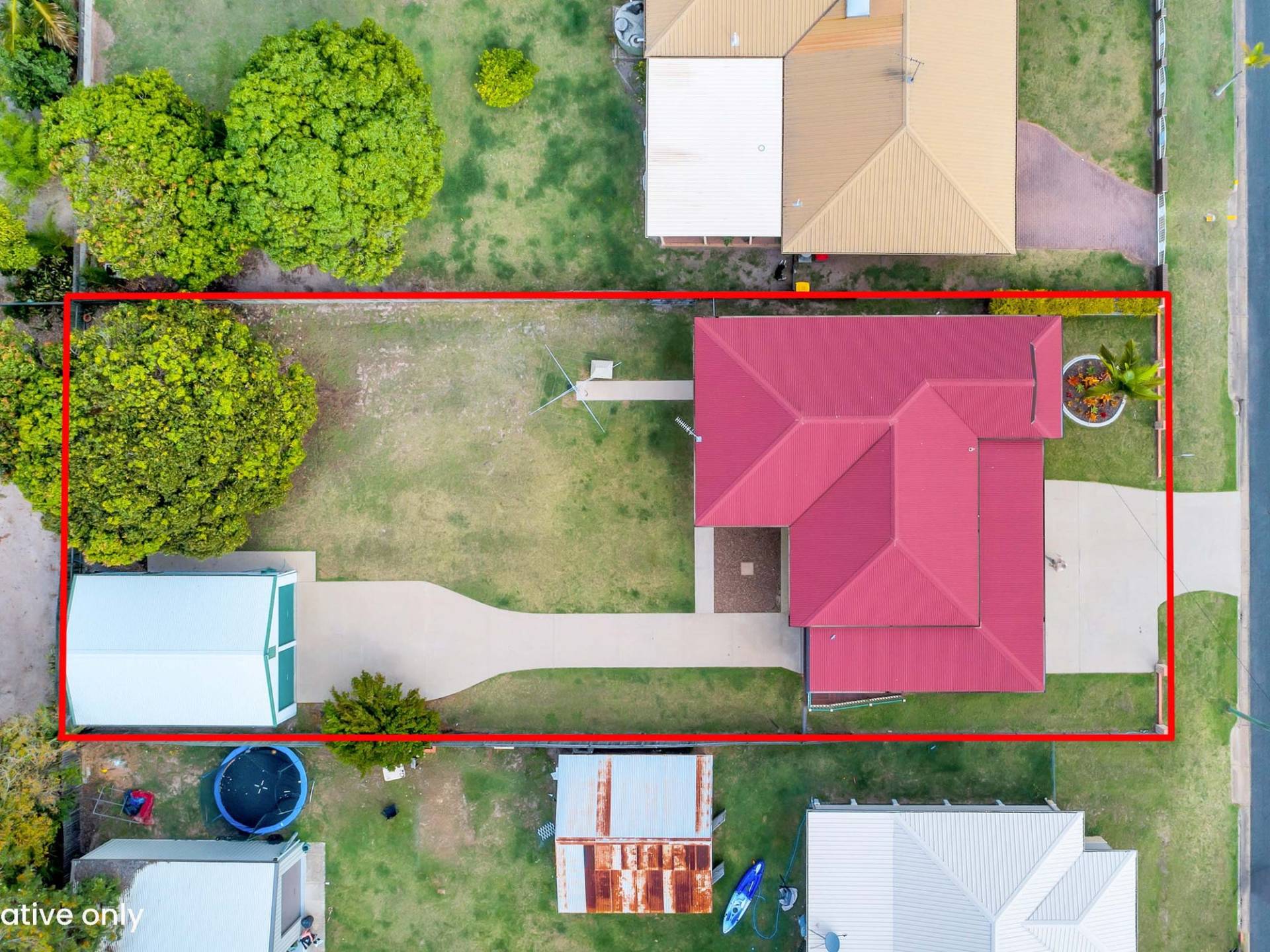 * Carport under deck leading through to a concreted driveway up to the double bay shed. Plenty of room to part your boat.